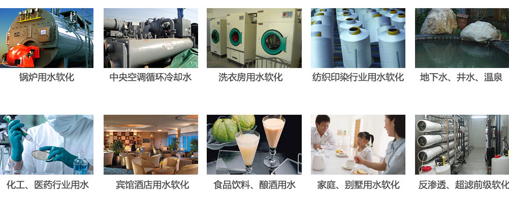适用行业:蒸汽锅炉、热水锅炉、交换器、蒸发冷凝器、空调、直燃机等系统的补给水的软化。还可用于宾馆、饭店、写字楼、公寓、家居等生活用水的处理及食品、饮料、酿酒、洗衣、印染、化工、医药等行业的软化水处理。